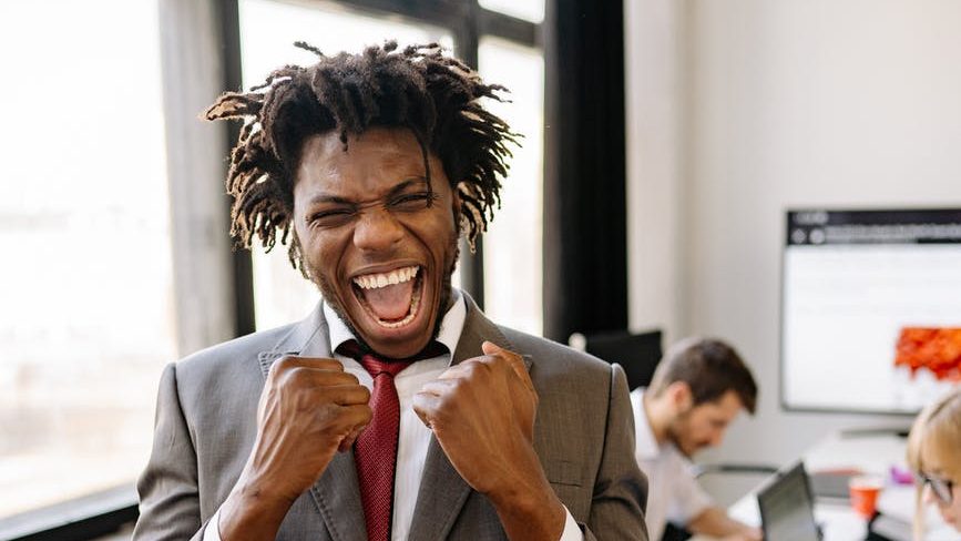 an elated businessman in the office