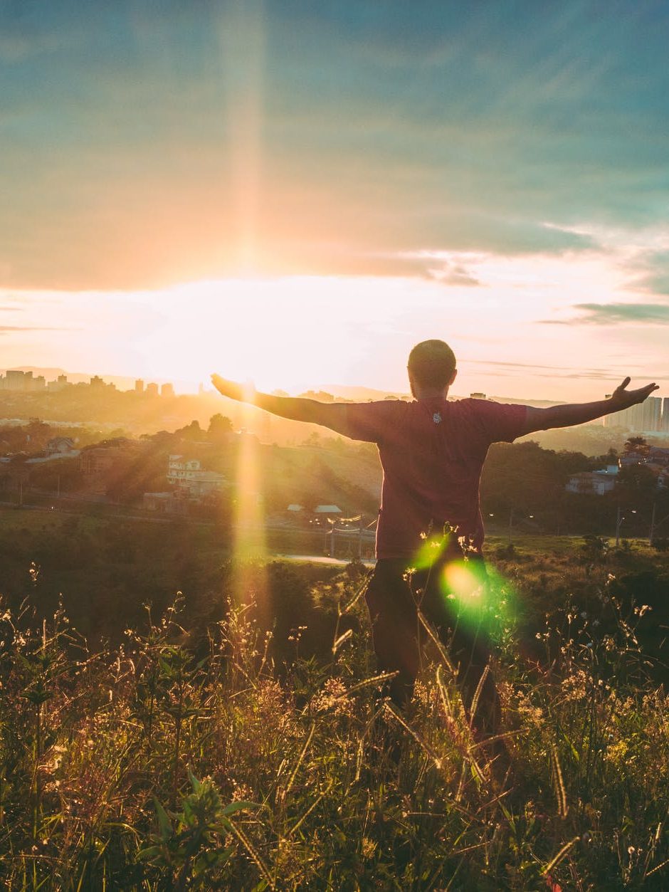 person spreading hands against sun